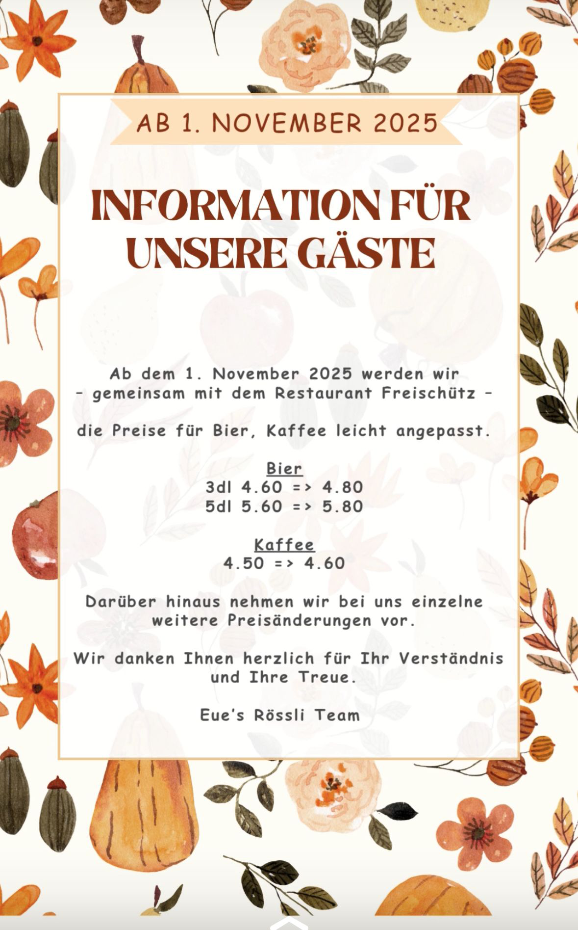 Preiserhöhung ab 01. November 2025